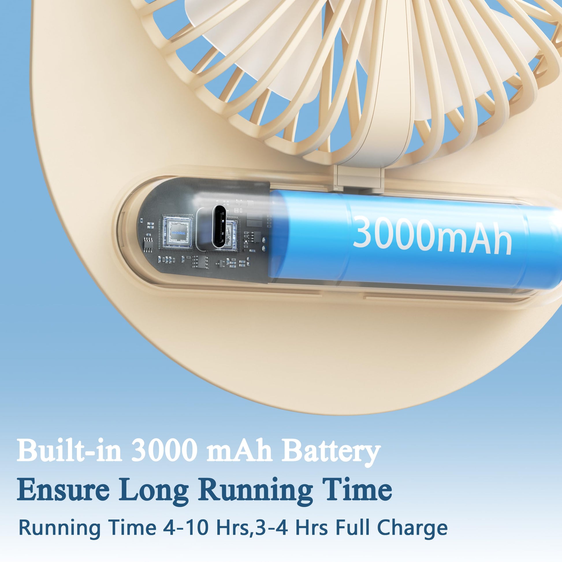- 【Super Long Working Time】This USB rechargeable fan has a built-in 3000mAh large capacity battery, which can work continuously for 4-10 hours (depending on the gear), with lasting endurance. It can be charged at any time by any USB device, and it only takes 3-4 hours to fully charge, bringing you lasting coolness.